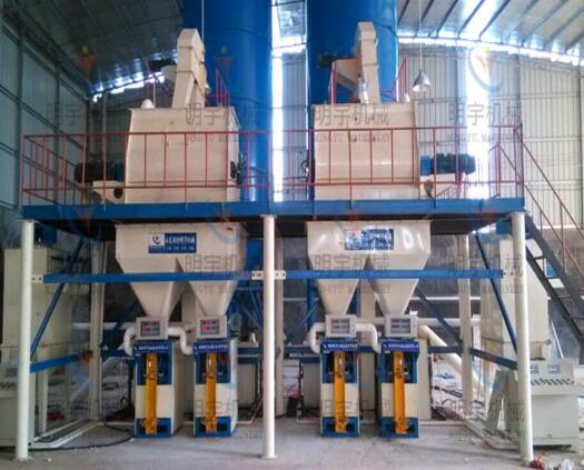 潍坊干粉砂浆成套设备生产的干粉砂浆设备,计量配料仓系统的重量要尽量轻便,在砂浆保证刚性充分(尤其是称重传感器安装、支撑部分)的前提下,其有效容积为各种配方物料体积总和值的百分之110—120,仓锥角按其中流动性差的物料能自由顺畅的滑下的角度设计。如果仓锥角设计的太小,易出现仓内物料排不干净,仪表显示不回零而不能自动进入下步程序的停止状态,而使自动生产线中断的后果。对于流动性非常差的物料,干粉砂浆设备可以在仓的中、下部设若干套单向喷气嘴助流,也可以采用柔性料仓。
